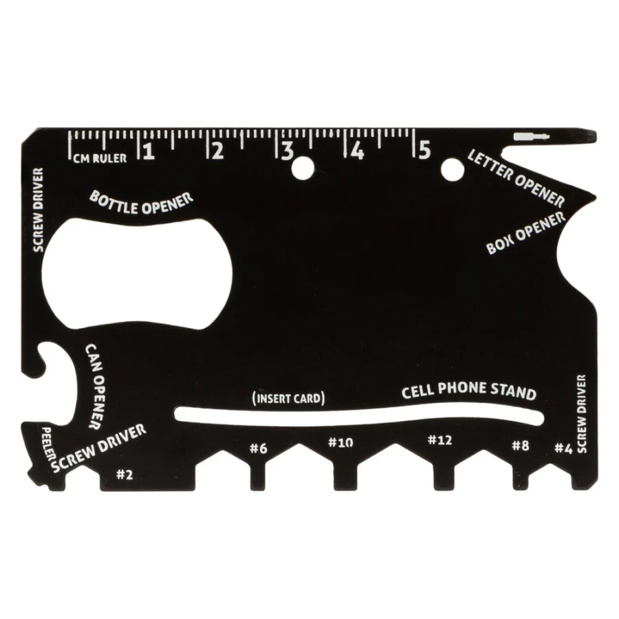 Additional informationMultifunction tool in case, 9 functions: ruler, mini screwdriver, cardboard opener, 2x screwdriver, spanners (#2, #4, #6, #8, #10, #12), phone holder (card not included), can opener, bottle opener