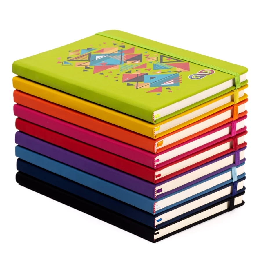 TheMaster A5 notebook is made of modern PU eco leather, giving the product an elegant, timeless look. With 96 lined pages, you can write down everything you need. The notebook is perfect as a personal diary as well as a small gift for meetings, rallies and events. The size of the product is 14x21 cm, which means that the Master A5 noteb ook fits into both a rucksack and a handbag. The notebook has a bookmark to keep things tidy and an elastic band to close it. Available in a range of colours.