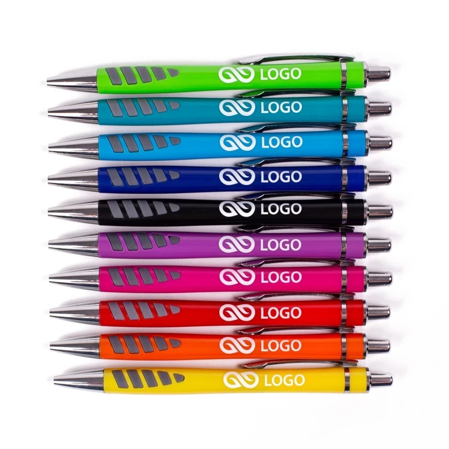 Anyone who wants an advertising pen for their marketing activities to be, above all, comfortable to use will be interested in the Mercury model. This promotional ballpoint pen with print has been thoughtfully shaped, with elements placed just above the tip for a more secure and comfortable grip when writing. The Mercury plastic ballpoint pens are made from durable ABS plastic and come in a number of different, fun colours. Additional parts, such as the tip, clip and switch button, are made of silver elements. The overall design is eye-catching in terms of colour and workmanship. The casing of the Mercury promotional pen can be printed with any one-colour logo or wording using pad printing.