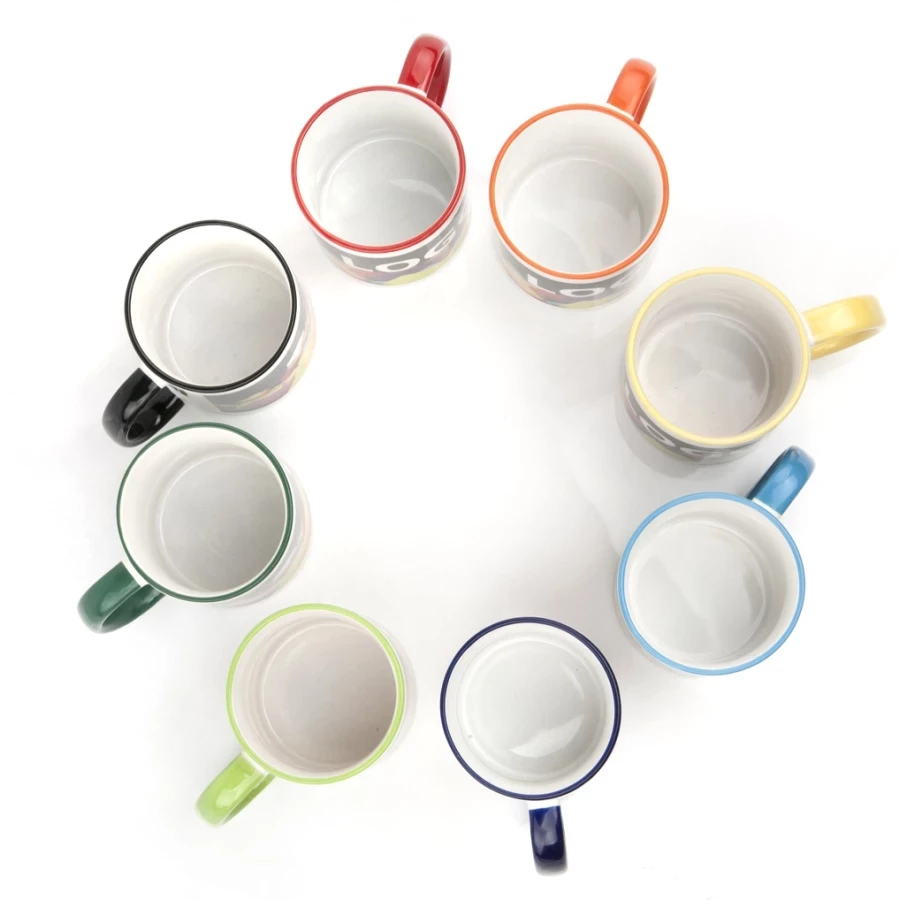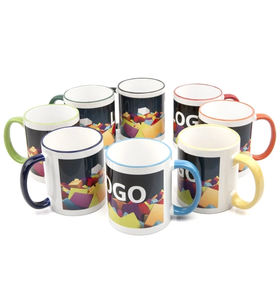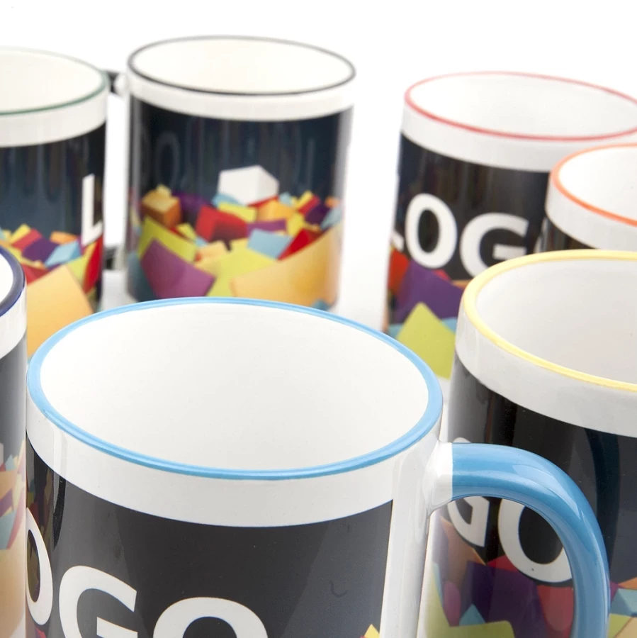 The Atena promotional mug is a classic model that stands out for its vibrant colours. It is made entirely of porcelain and its handle and rim are decorated with colourful accents. Thanks to the possibility of sublimation printing on it, the Atena promotional mug can be branded with any full-colour graphic depicting, for example, your company logo. Printed mugs mugs will look great on the desks of your employees and are also suitable as small gifts for your customers. Athena mugs are a simple, inexpensive but effective element of your branding strategy.