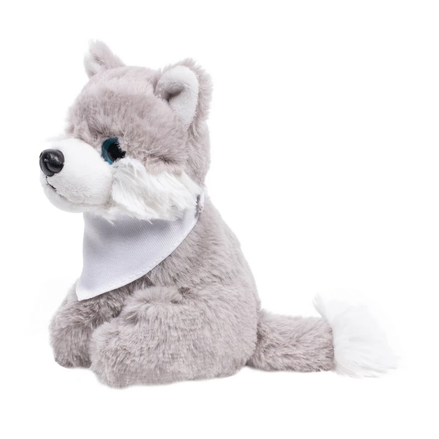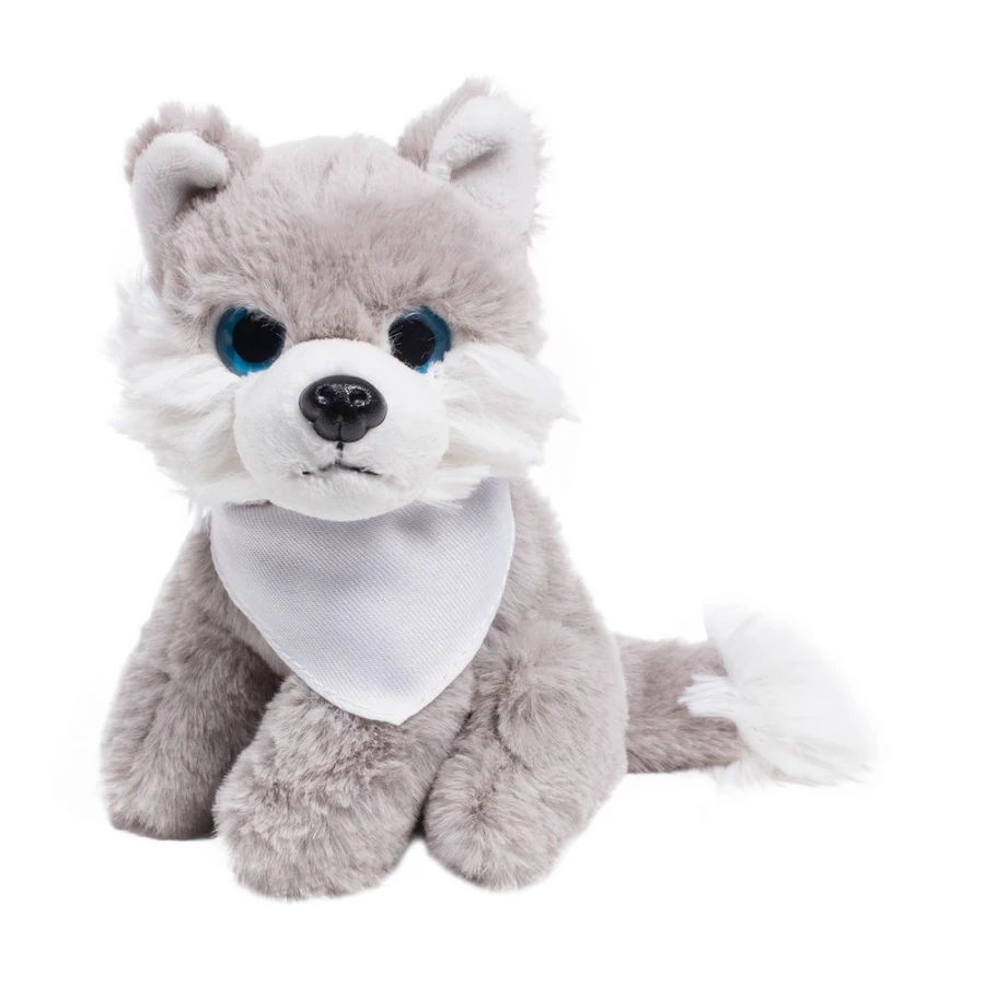 The Fang plush wolf is an adorable and functional promotional gadget that combines aesthetics and practicality. Made of soft plush in grey, it stands 14 cm tall and weighs 65 g, making it the perfect companion for both children and adults. In addition, it comes with a white bandana that can be personalised by printing your logo or advertising slogan, making it the perfect advertising medium. This makes the Fang Wolf perfect as a corporate gift, promotional gadget at trade fairs, conferences or events.