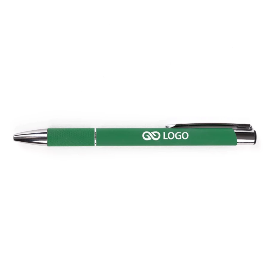 The Zoe pen is a practical promotional gadget that you can hand out to your customers at company events, trade fairs, conferences and business meetings. The refill of the pen is unlocked by pressing the button at the top. The colour of the refill is blue, but it is possible to buy a black refill - in which case you will have to replace the stock yourself. You can laser engrave on the pen - on the right or left side - with a maximum size of 55 mm x 6 mm. It is possible to order pens in several colours. For a comfortable grip, the product is covered with rubberised plastic.
